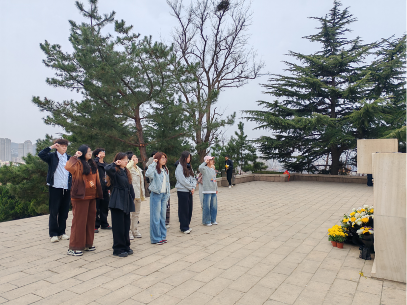 西炮台作为全国重点文物保护单位,是烟台近代海防的重要见证,承载着爱国将士抵御外侮、保家卫国的英雄记忆,也是学院开展红色教育的重要阵地。活动伊始,全体人员列队肃立,在烈士纪念碑前庄严肃穆,向革命先烈默哀,寄托对英烈的无尽追思与崇高敬意 。随后,学生代表缓步上前,小心翼翼地将洁白的菊花敬献于碑前,轻轻整理花篮缎带,以最真挚的仪式感告慰先烈英灵 。