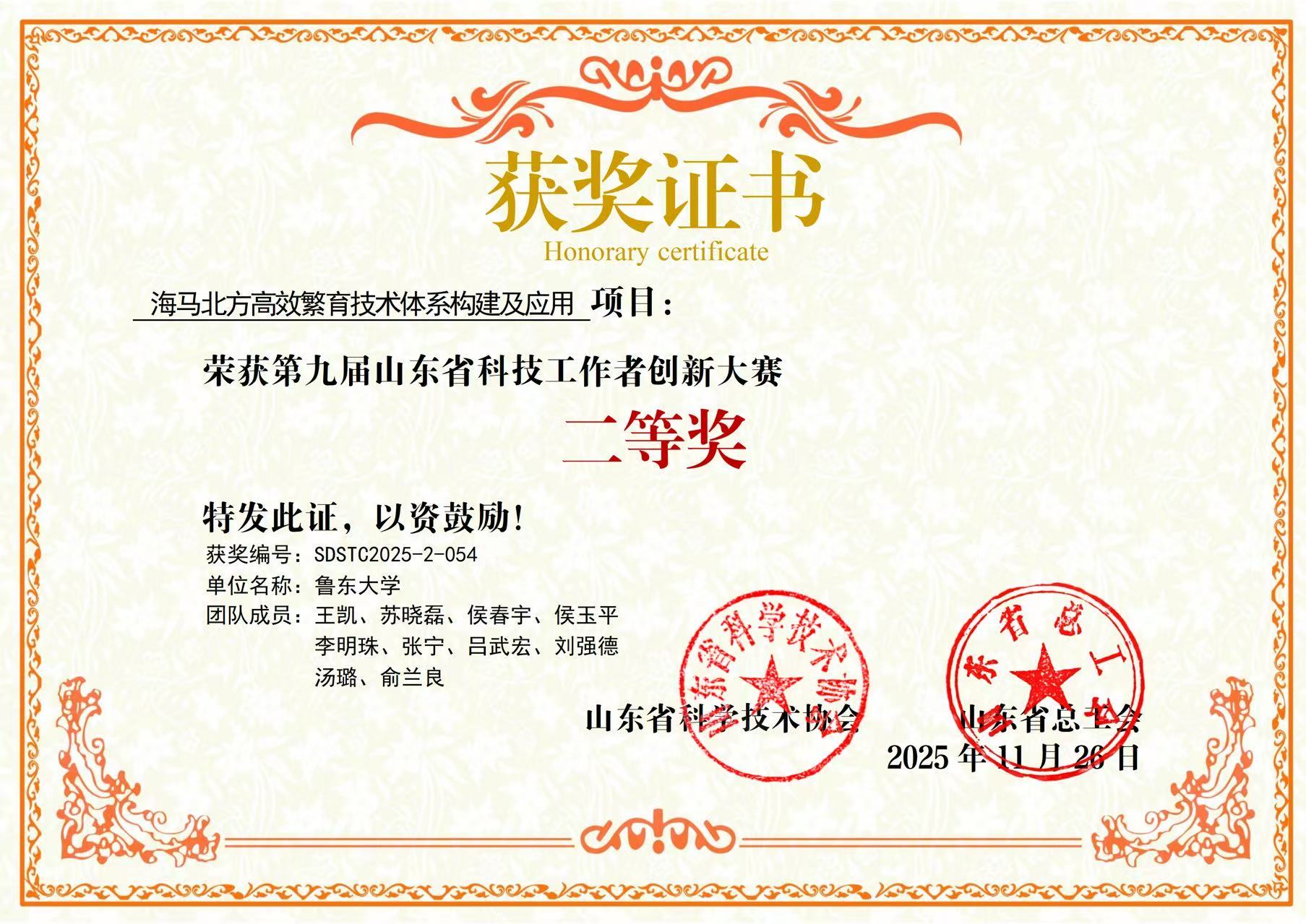 近日,第九届山东省科技工作者创新大赛获奖名单正式公布,由王凯教授申报的“海马北方高效繁育技术体系构建及应用”项目荣获大赛二等奖。这不仅是对项目团队科研实力的认可,更标志着鲁东大学水产学科建设取得重要突破。