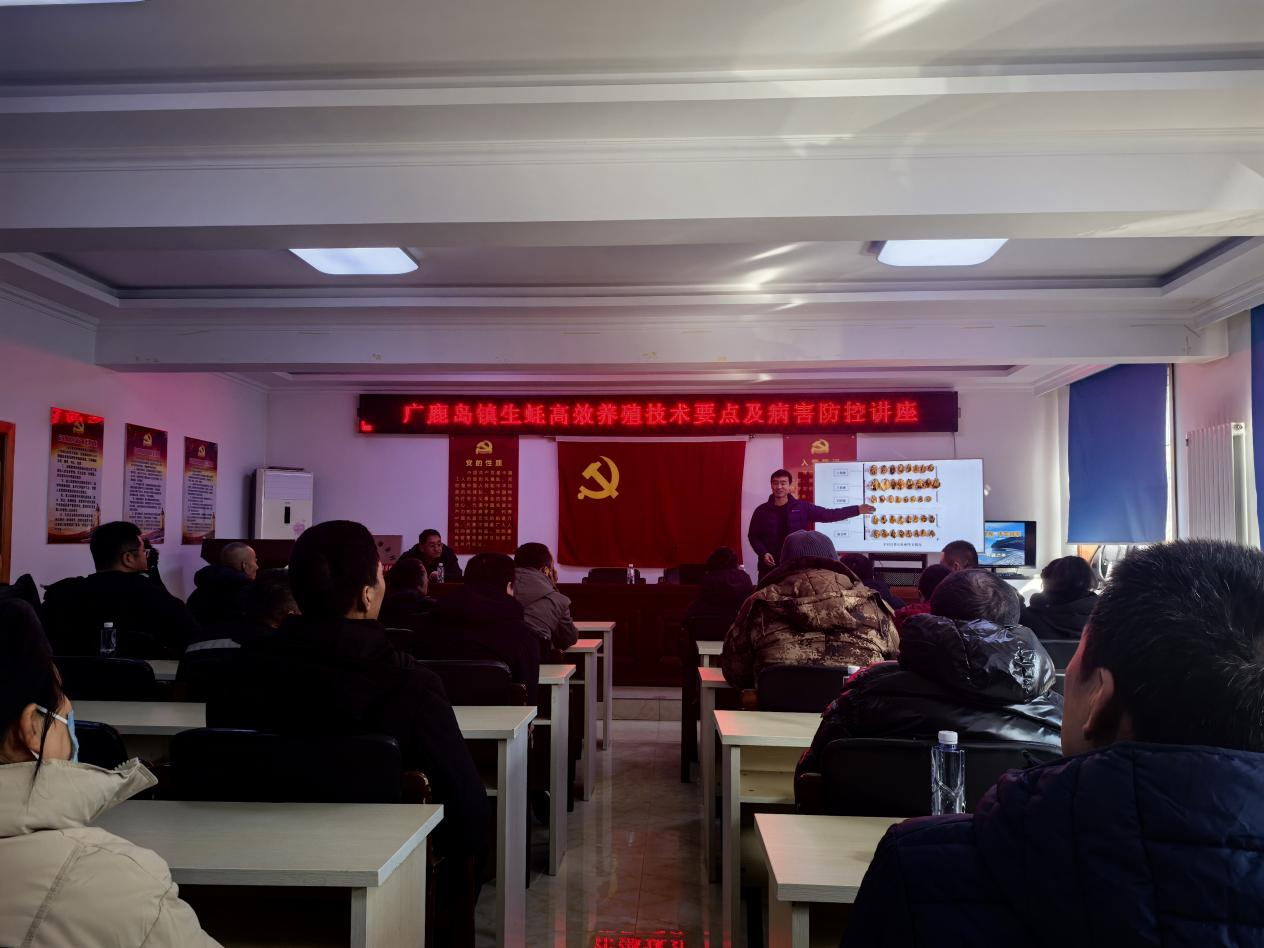 2026年1月25日,辽宁省大连市长海县广鹿岛镇人民政府与镇牡蛎协会联合举办“生蚝高效养殖技术要点及病害防控”专题培训,聚焦产业痛点,旨在破解养殖技术瓶颈,推动当地牡蛎产业提质增效。我院水产遗传育种与健康养殖团队王卫军教授应邀授课,为全镇牡蛎养殖企业负责人及技术骨干带来了一场理论与实践深度融合的技术盛宴。